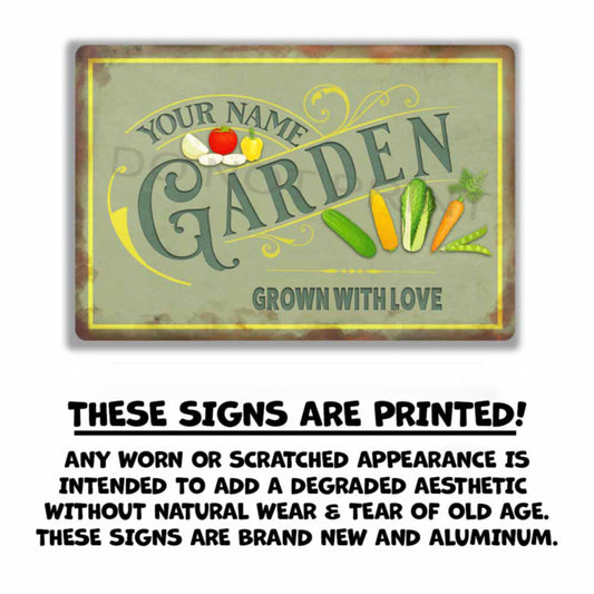 Personalized Green Metal Garden Sign - Wall Art Vintage Metal Sign 12" x 8”