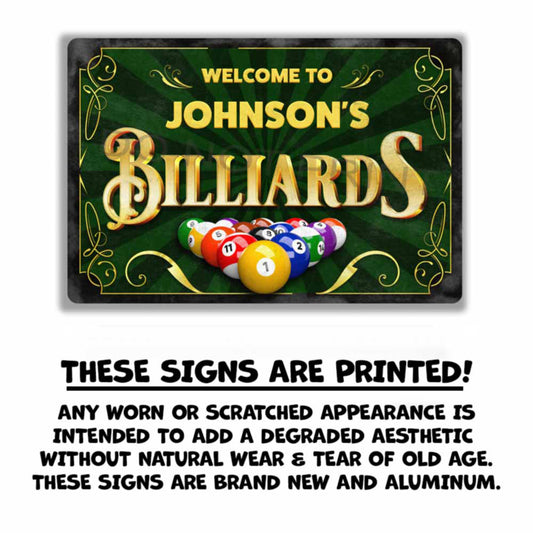 Personalized Vintage Billiards Rusty Metal Sign - Wall Art Vintage Metal Sign 12" x 8”