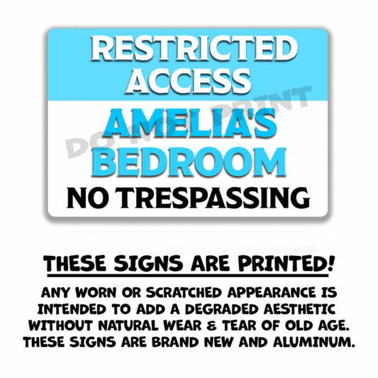 Personalized Blue Sign Restricted Access Bedroom Sign Wall Art Vintage Metal Sign 12" x 8”