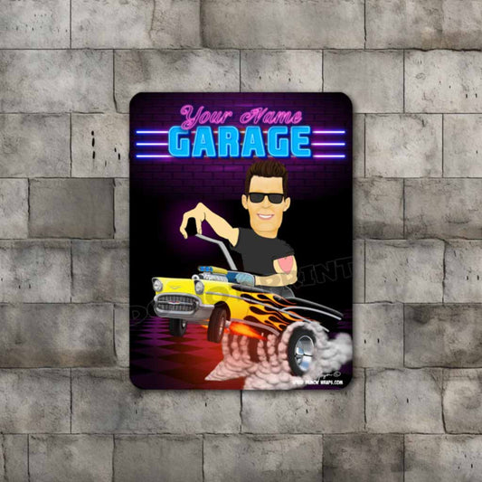 Personalized Custom Garage Sign From Photo 12" x 9" 1957 Chevy Cartoon