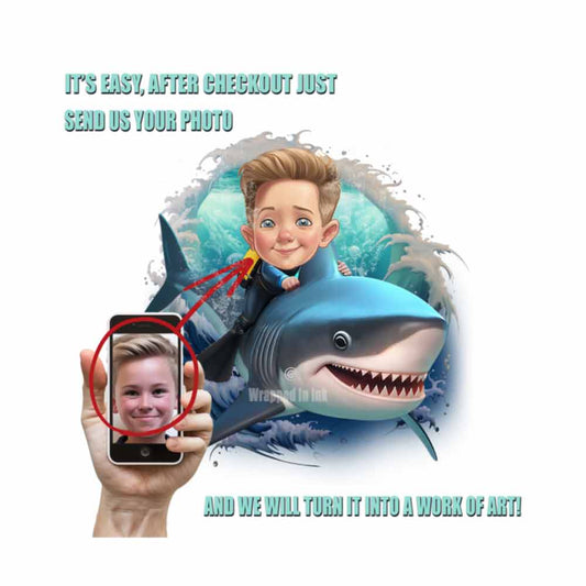 Child Riding a Shark Custom Cartoon Caricature From Photo Personalized Magic Mug