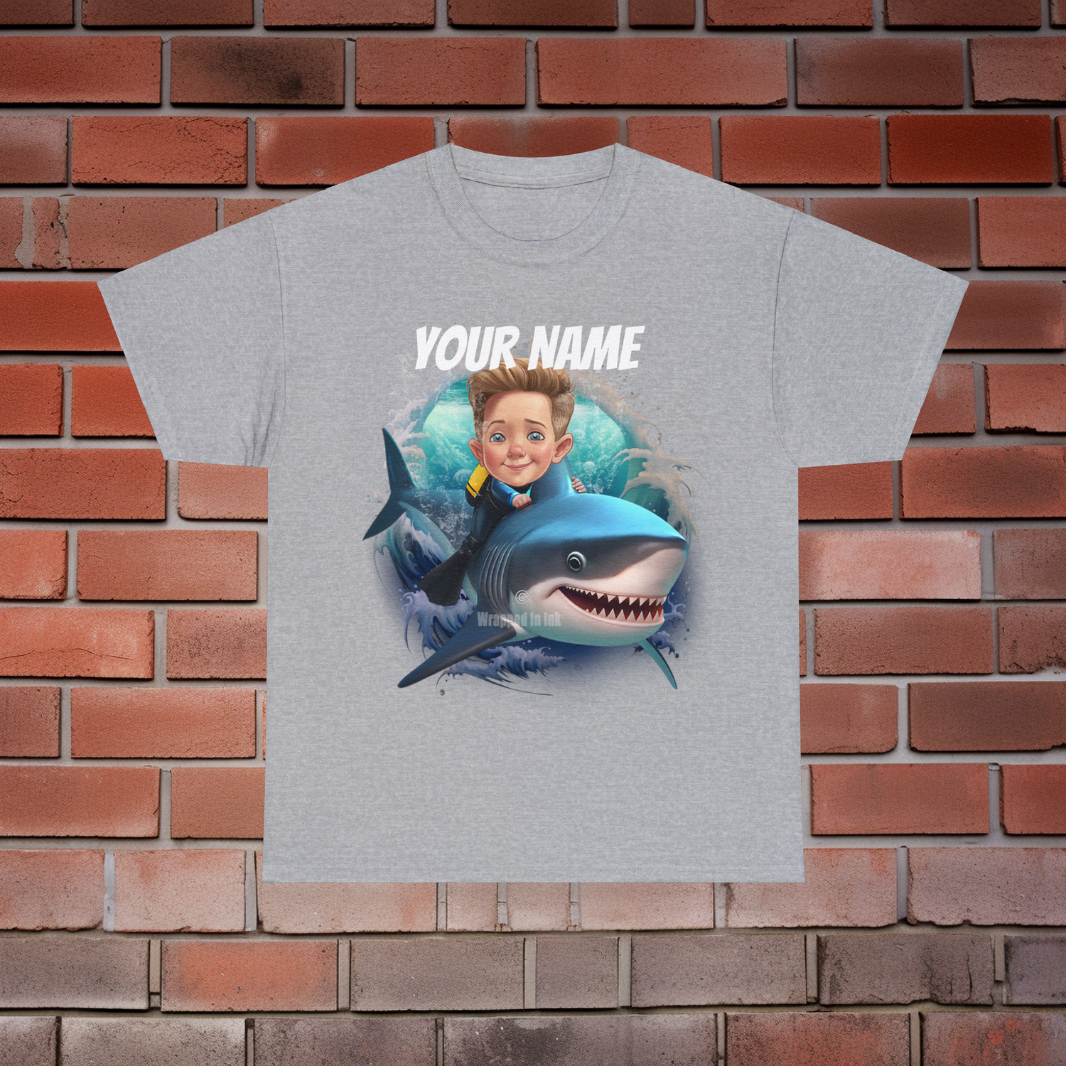 Personalized Kid Riding a Shark Custom Cartoon Caricature From Photo