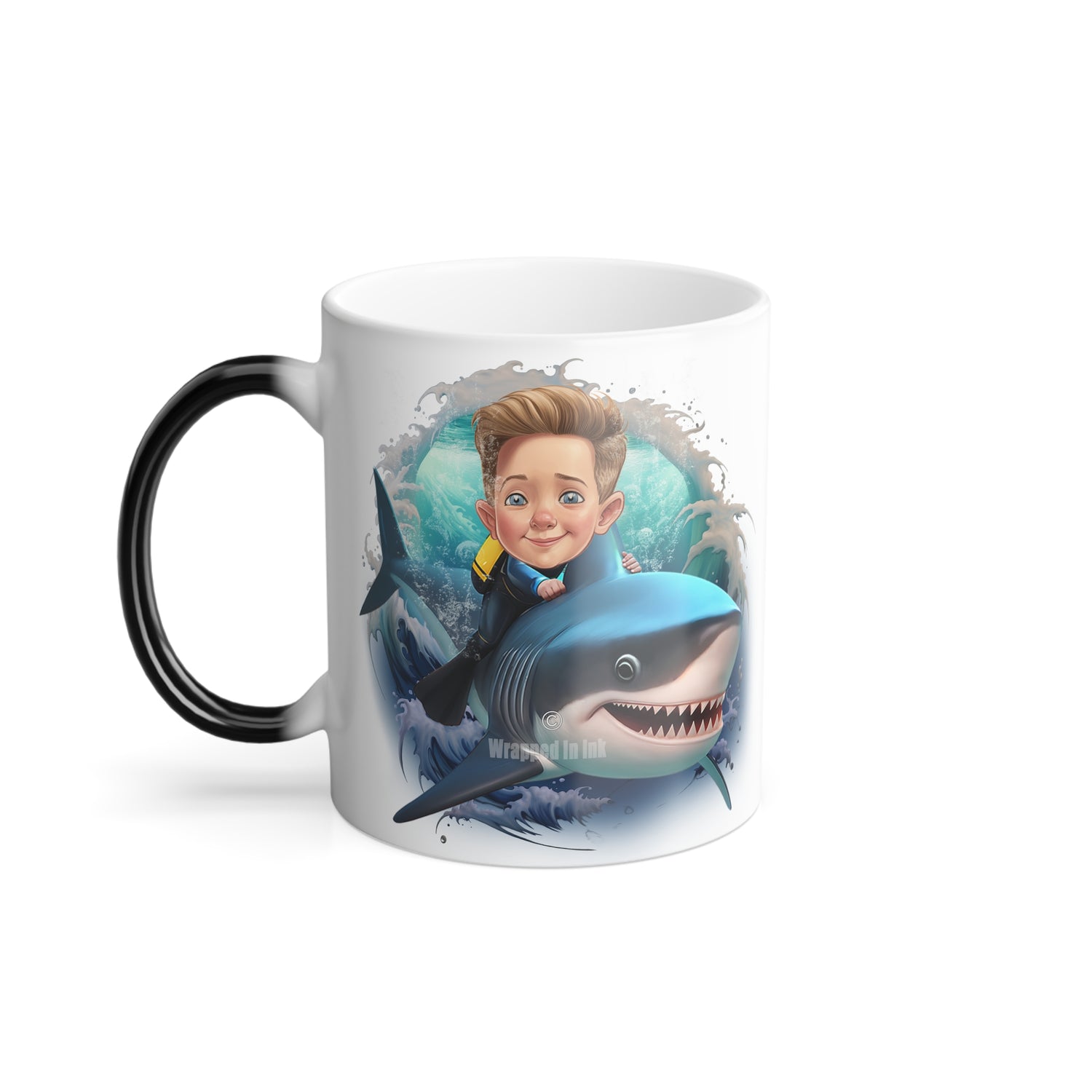 Personalized Kid Riding a Shark Custom Cartoon Caricature From Photo
