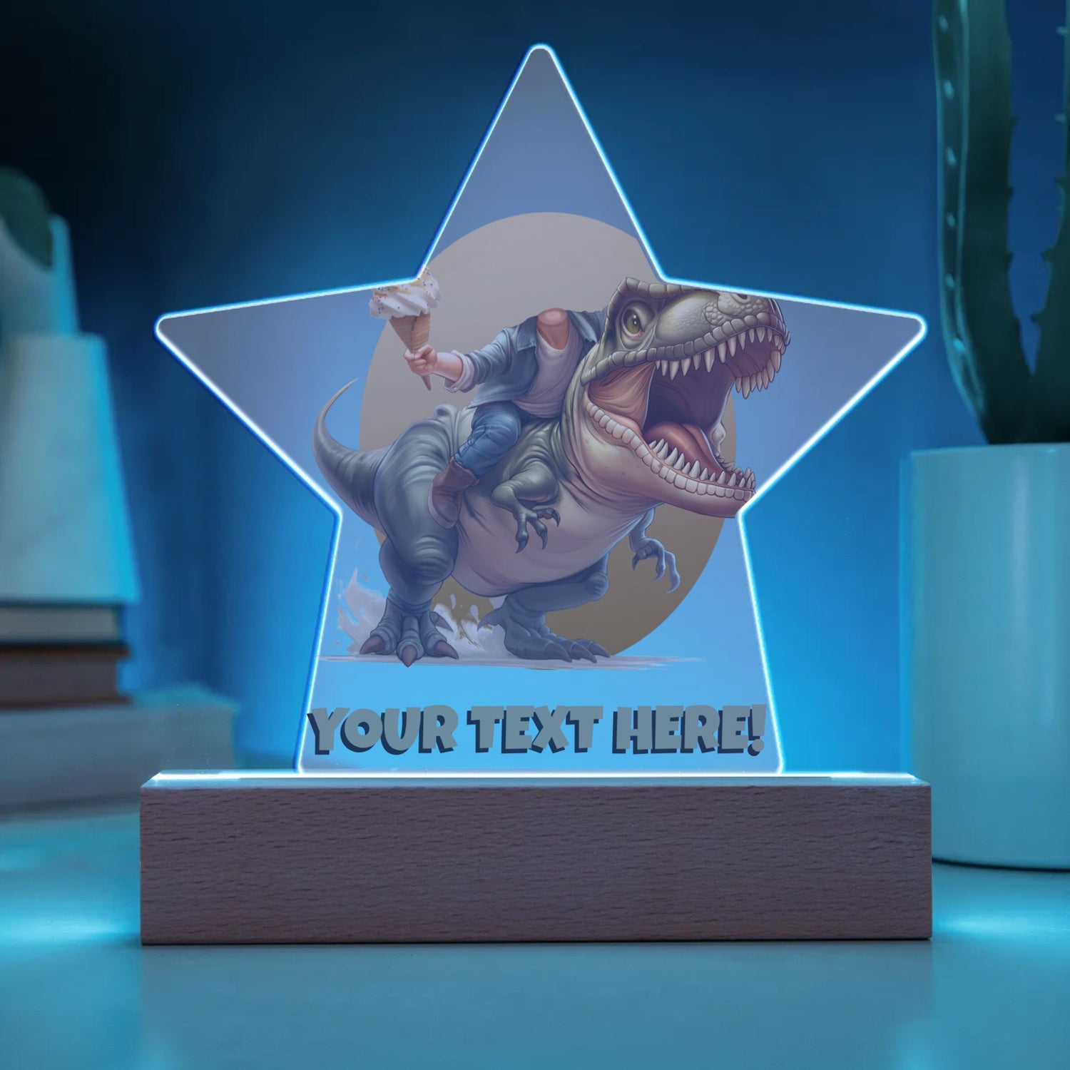 Child Riding a T Rex Custom Cartoon Caricature From Photo Personalized Acrylic Star Plaque