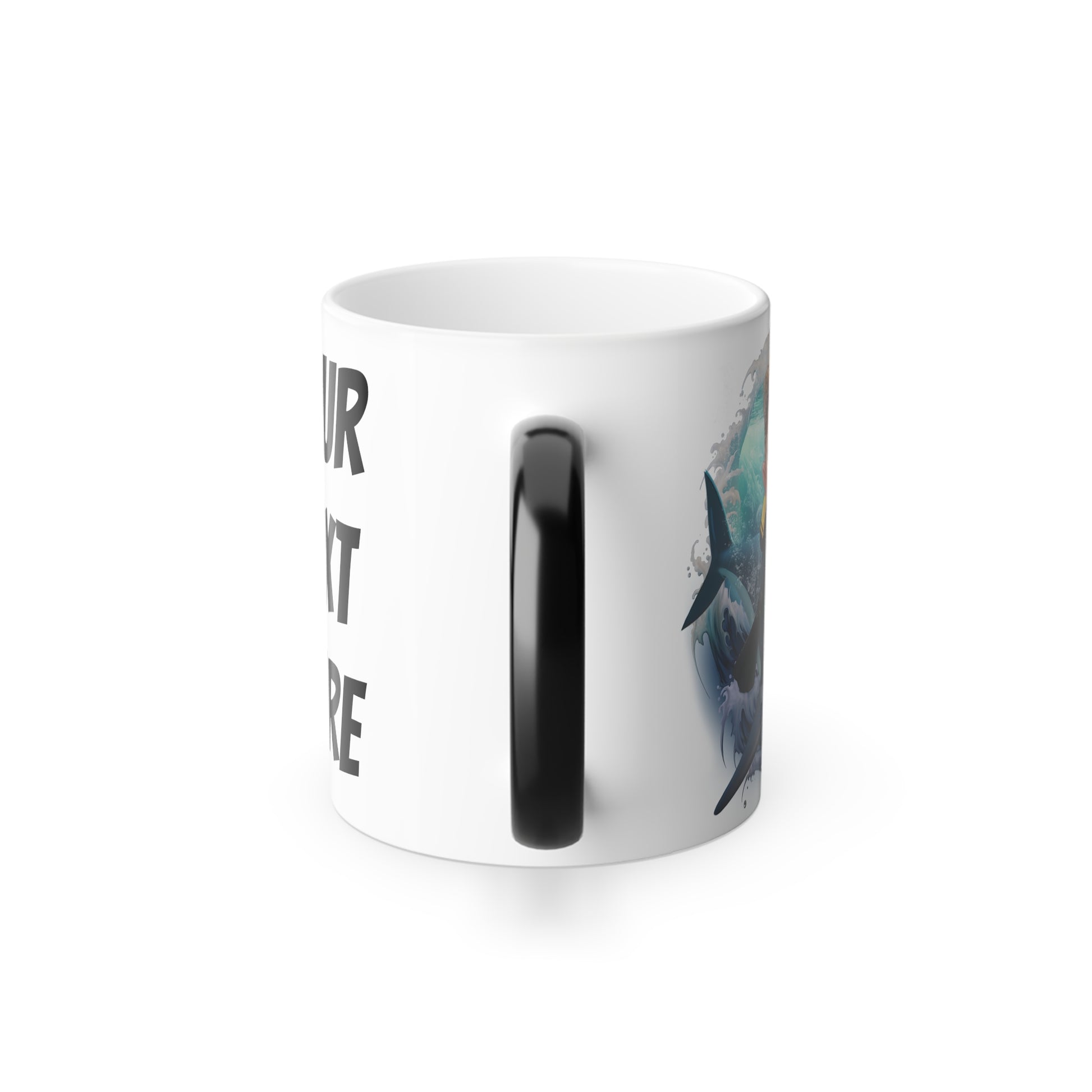 Our Personalized Hand Drawn Child Riding a Shark Custom Cartoon Caricature From Photo Mug – a heartwarming, unique gift for your loved ones. It's not just a mug, but a magical experience. Watch as the heat-reactive surface unveils your custom designs when filled with your favorite hot beverage. As the cup cools down, it reverts to its chic black exterior and pristine white interior, ready for the next reveal.