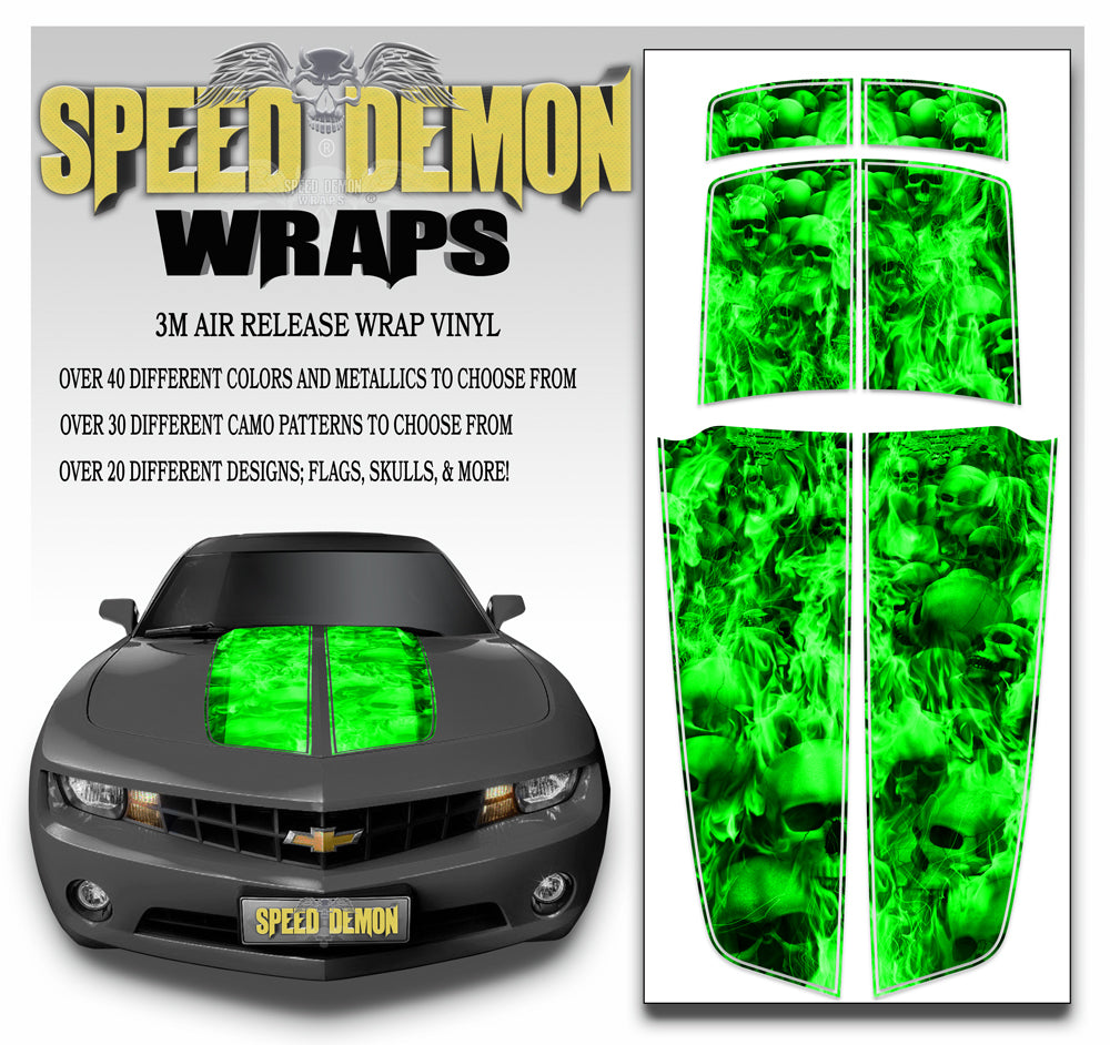 Camaro Stripes Green Flaming Skulls 2010-2015