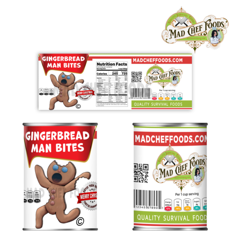 This Christmas, add a little humor with these 4" x 11" Gingerbread Man Bites Soup Can Labels - a guaranteed hit for any funny gag! Perfect for adding a unique touch to your holiday festivities, you'll be sure to have everyone cracking up! These Prank Soup Can Labels are sized around #2 Soup Cans to turn that simple soup into a repulsive masterpiece.