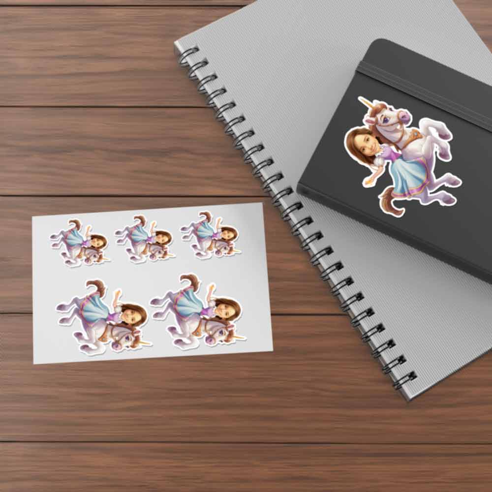 Transform everyday life into a magical adventure with our Personalized Unicorn Caricatures of a Child Sticker Pack. Watch your child's face light up with joy as they see themselves on an enchanting journey, frolicking with unicorns in a mystical landscape. These stickers provide more than just a whimsical touch; they celebrate your child's boundless imagination and love for all things magical.