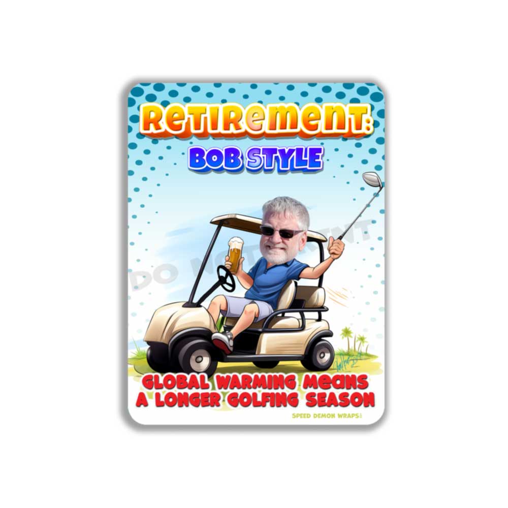 Are you looking for a unique and entertaining way to personalize your golf room? Look no further than our Personalized Retirement Metal Sign Funny Golfing Portrait from Photo. Crafted with attention to detail, this metal sign brings a touch of personalization and humor to your golf sanctuary.